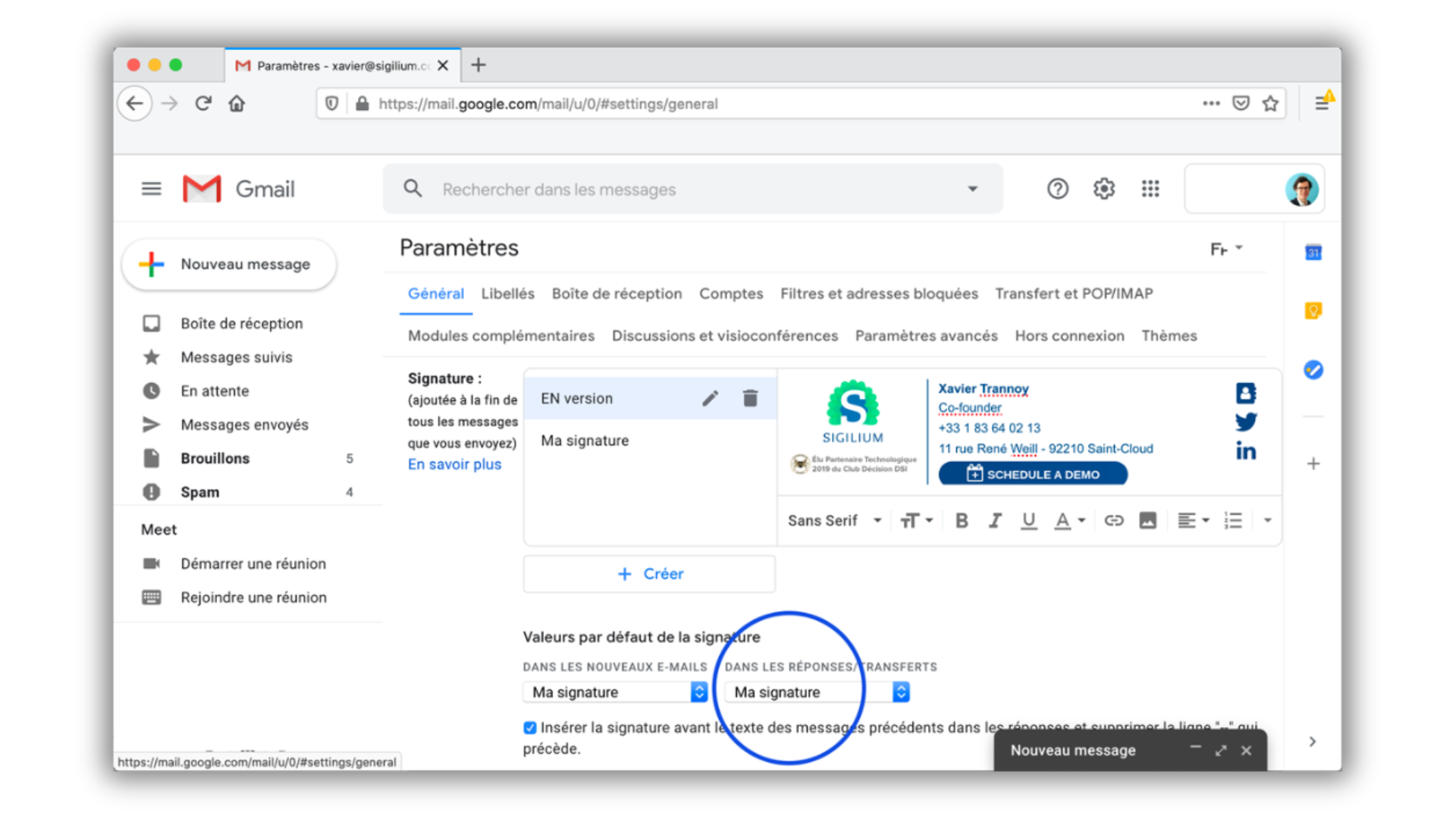 Comment ajouter sa signature email en réponse-transfert dans Gmail