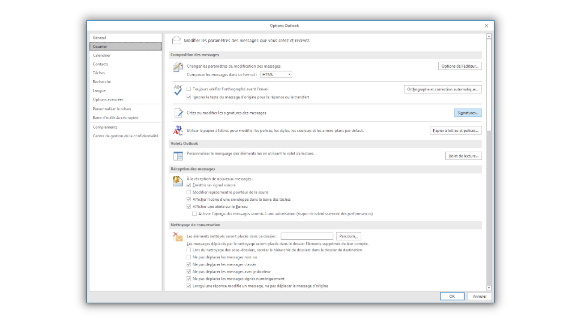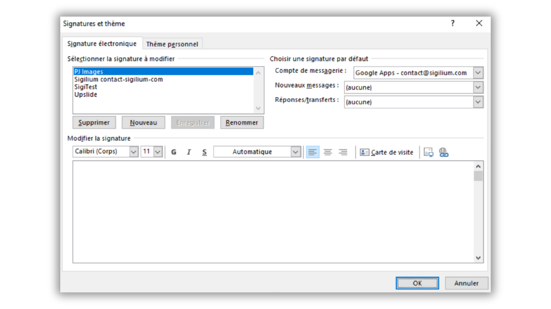 Comment retirer la signature email par défaut d'Outlook