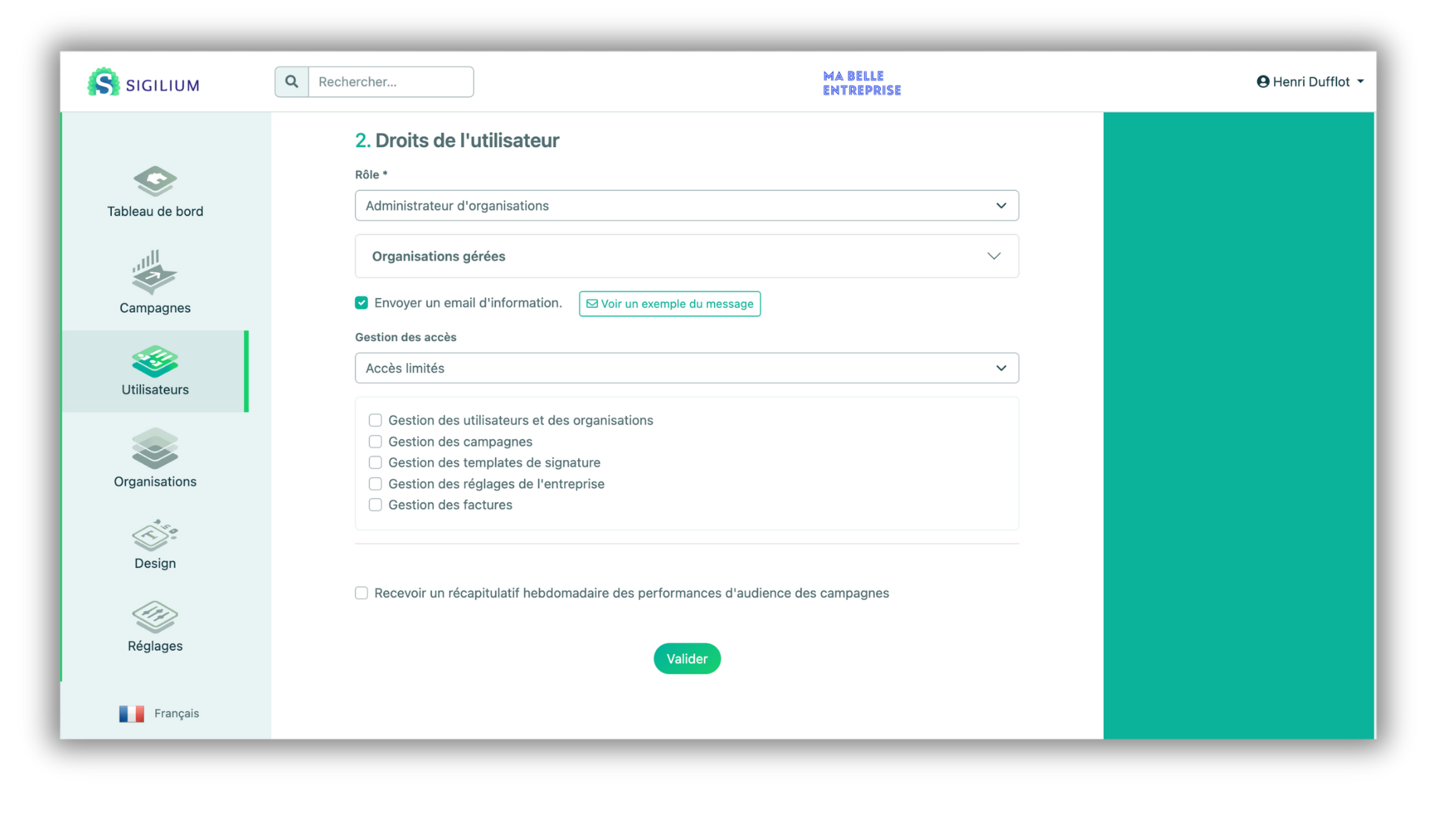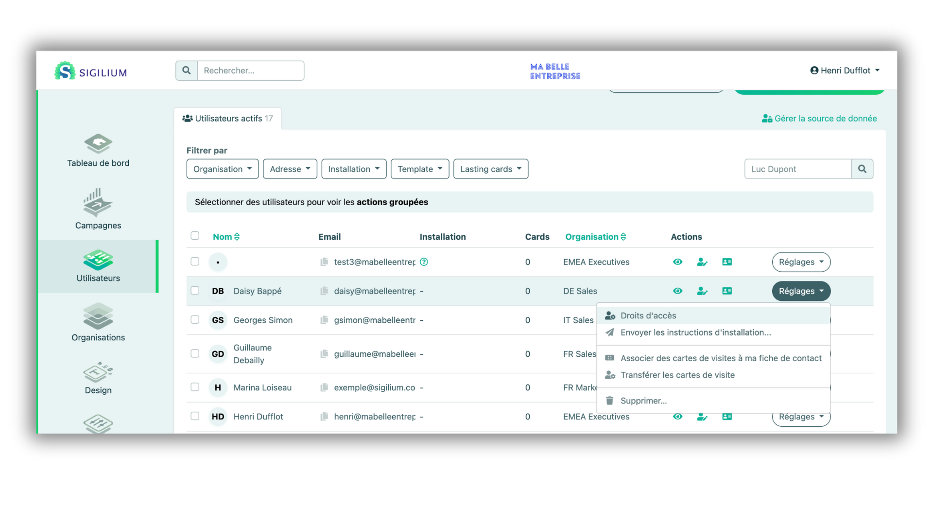 → Global access on “Users” and on “Organizations” linked to the company.